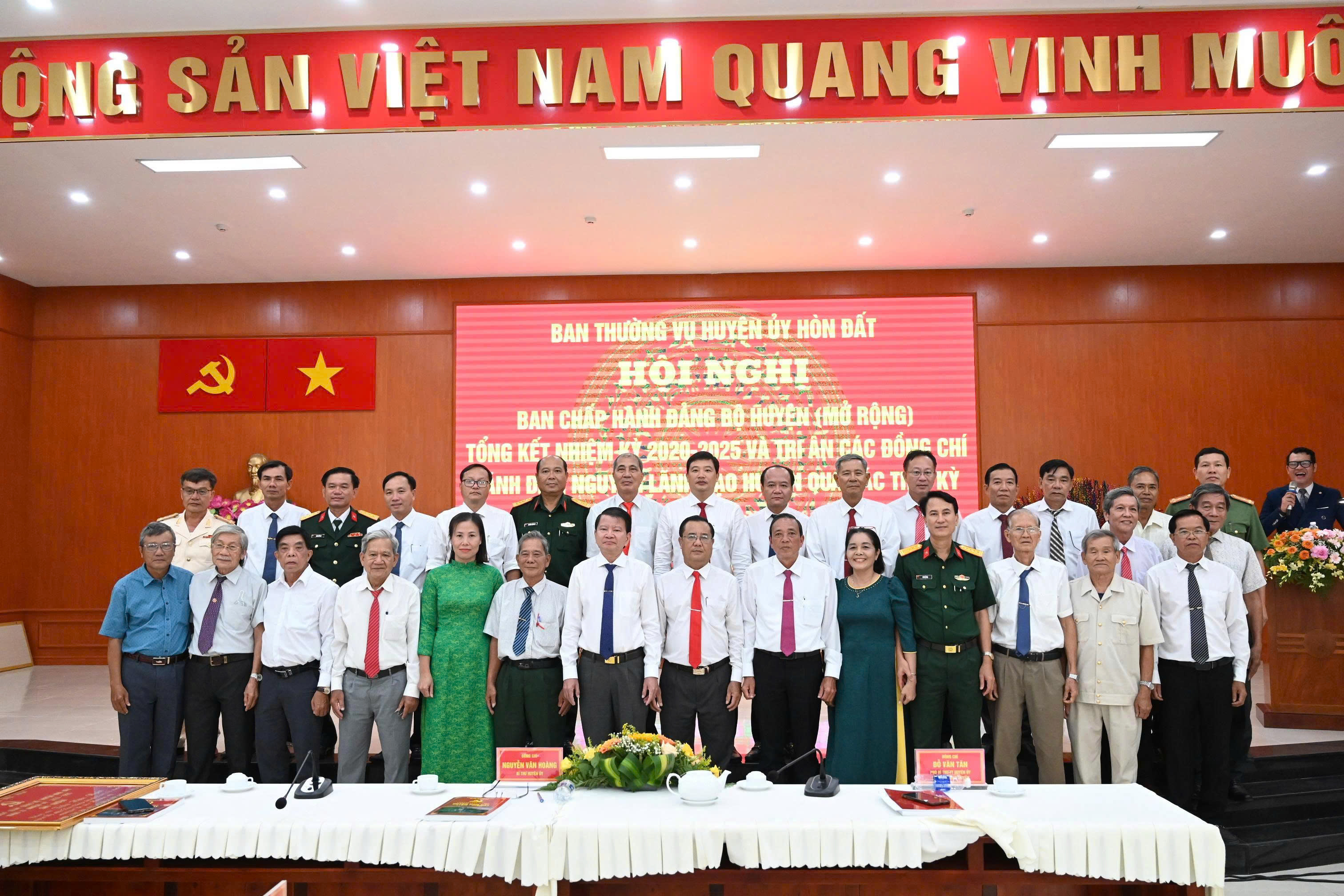 Dịp này, Huyện uỷ Hòn Đất đã trao tặng quà tặng lưu niệm của Ban Chấp hành Đảng bộ huyện khóa XI cho các đồng chí lãnh đạo, nguyên lãnh đạo huyện, Ủy viên Ban chấp hành, Nguyên ủy viên Ban chấp hành Đảng bộ huyện các khóa, Bí thư các Chi bộ, Đảng bộ cơ sở, Các Công ty, Doanh nghiệp đã có nhiều đóng góp đối với sự phát triển của huyện Hòn Đất và chụp ảnh lưu niệm./.