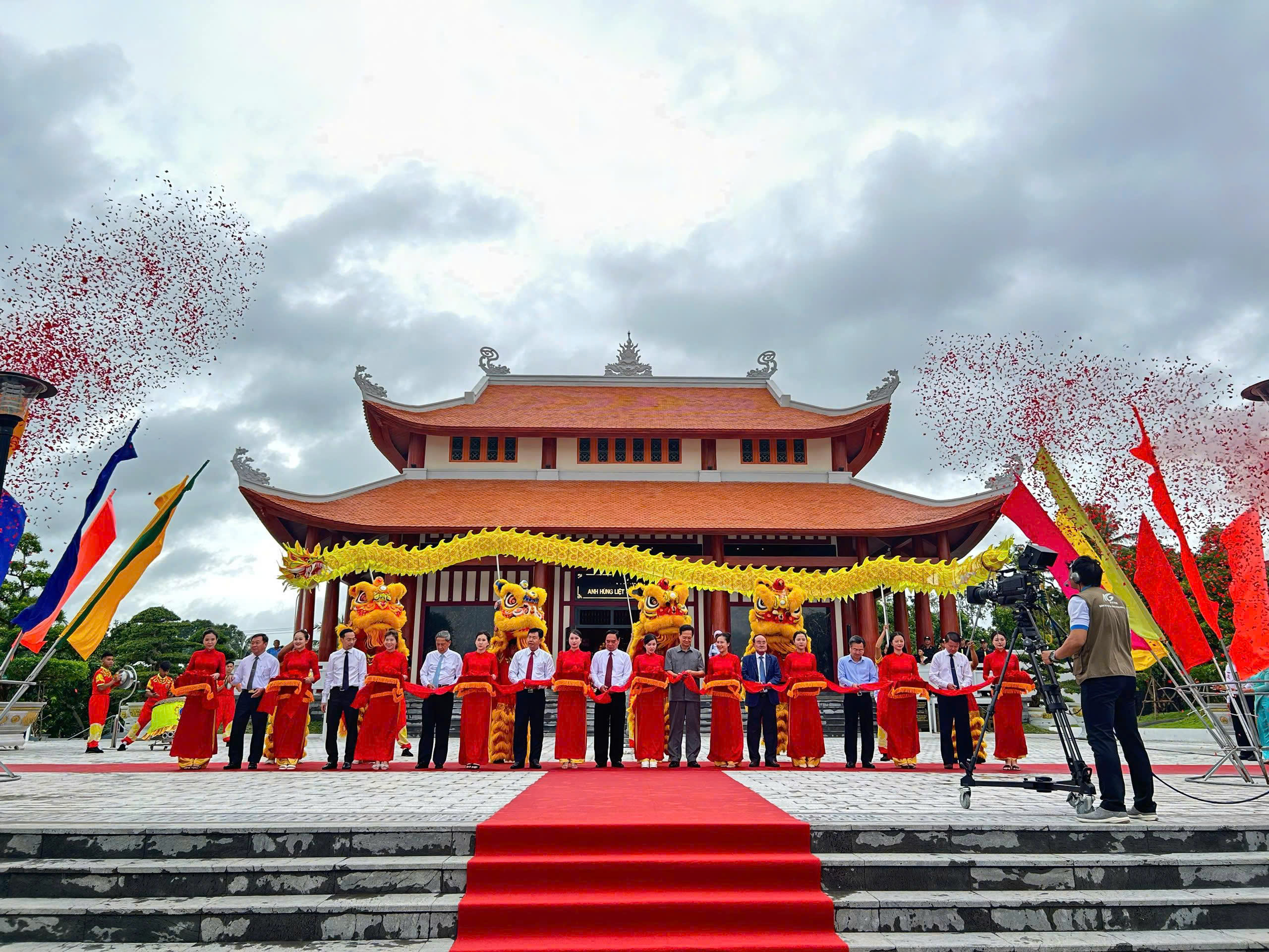 Các đồng chí lãnh đạo cắt băng khánh thành Đền tưởng niệm Anh hùng Liệt sĩ huyện Hòn Đất